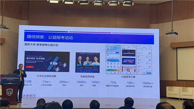 在促进教育公平领域,王殿军教授介绍了“圆梦大学·高考报考”公益工程。他表示,教育强国建设既要靠科技赋能提质,更要靠公益托底保证,让每个孩子都能享有公平而有质量的教育。当做平方创想校园发起的促进产业数字开放、数字共享、工具开放的旗舰公益行动,“圆梦大学”始终以“为全国考生家庭给予更公平、更科学的报考支撑”为己任。自2016年至今,行动已累计招揽超十万名大学生志愿者参与,深度覆盖上千所欠发达地区高中,胜利助力全国8000余所高中的百万考生家庭获取宝贵的数字、知识与工具支撑。
